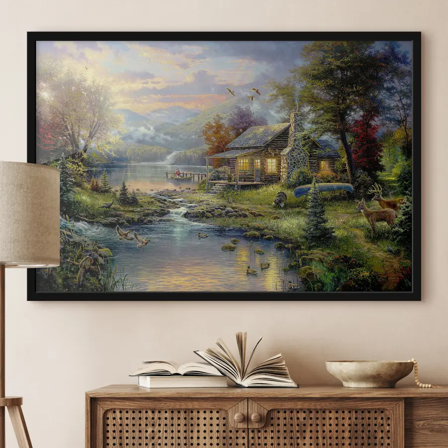 Mäkká krajina s jazerom v teplých béžovo-sivých odtieňoch