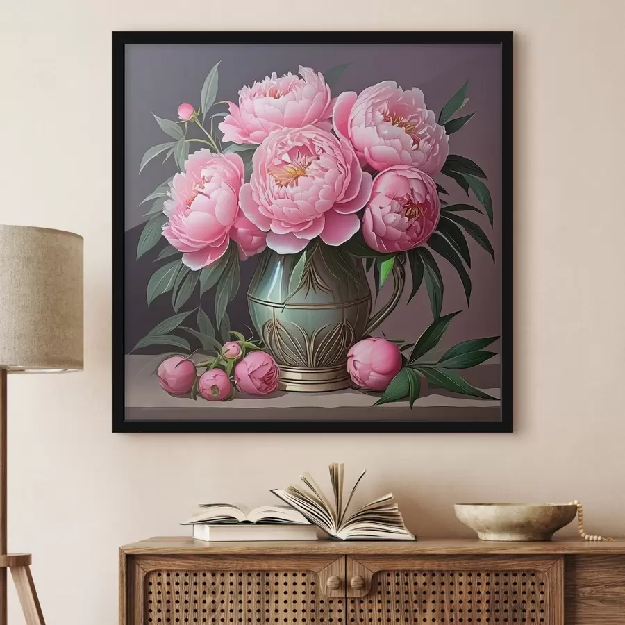 Kvety s imitáciou v štýle impasto v ružových a bielych ťahoch