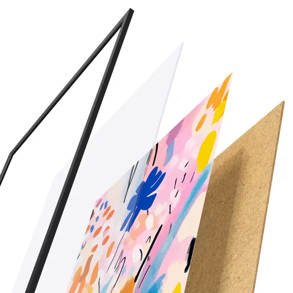 Plagát sa skladá z rámu, plexiskla, vytlačeného obrazu a podkladu z drevotriesky. Plagát možno okamžite zavesiť na stenu vďaka úchytom na zadnej strane.