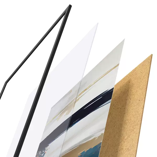 Plagát sa skladá z rámu, plexiskla, vytlačeného obrazu a podkladu z drevotriesky. Plagát možno okamžite zavesiť na stenu vďaka úchytom na zadnej strane.
