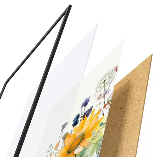 Plagát sa skladá z rámu, plexiskla, vytlačeného obrazu a podkladu z drevotriesky. Plagát možno okamžite zavesiť na stenu vďaka úchytom na zadnej strane.