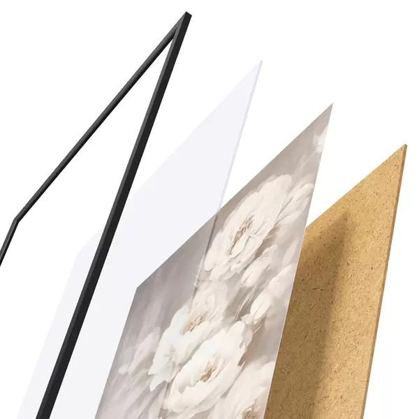 Plagát sa skladá z rámu, plexiskla, vytlačeného obrazu a podkladu z drevotriesky. Plagát možno okamžite zavesiť na stenu vďaka úchytom na zadnej strane.