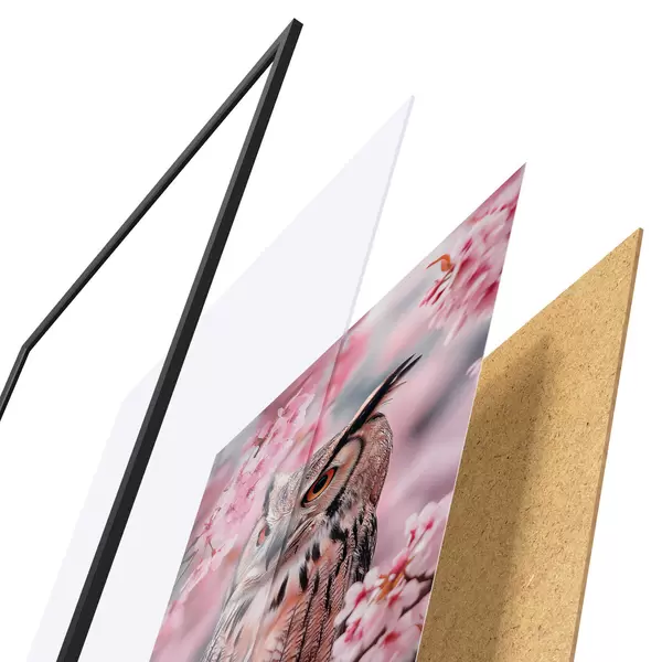 Plagát sa skladá z rámu, plexiskla, vytlačeného obrazu a podkladu z drevotriesky. Plagát možno okamžite zavesiť na stenu vďaka úchytom na zadnej strane.