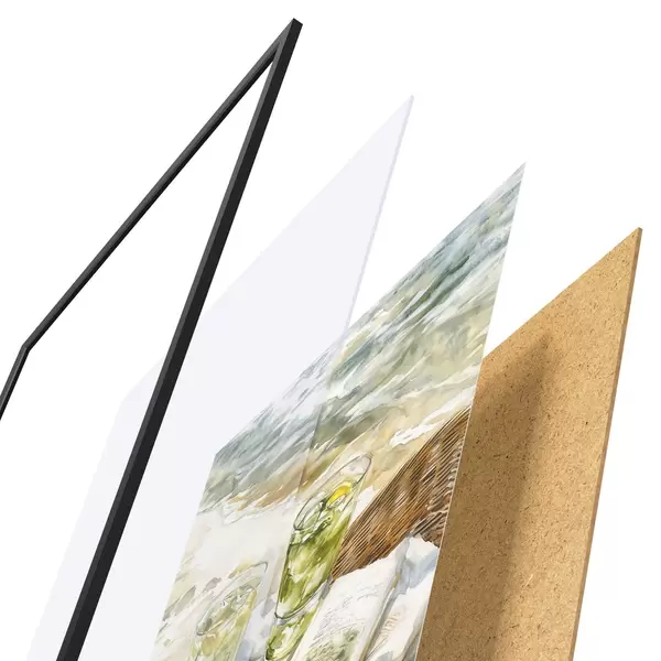Plagát sa skladá z rámu, plexiskla, vytlačeného obrazu a podkladu z drevotriesky. Plagát možno okamžite zavesiť na stenu vďaka úchytom na zadnej strane.
