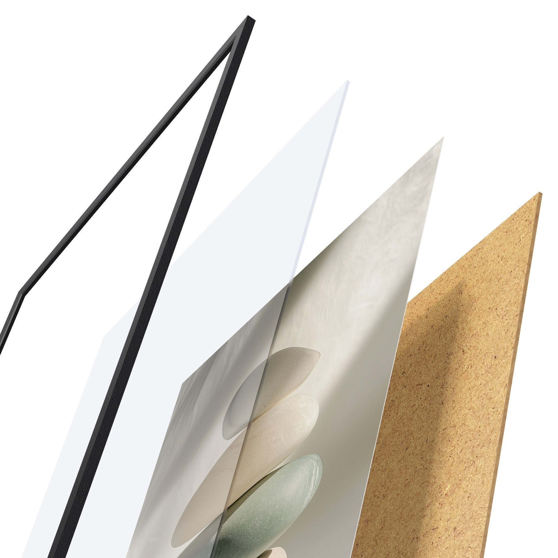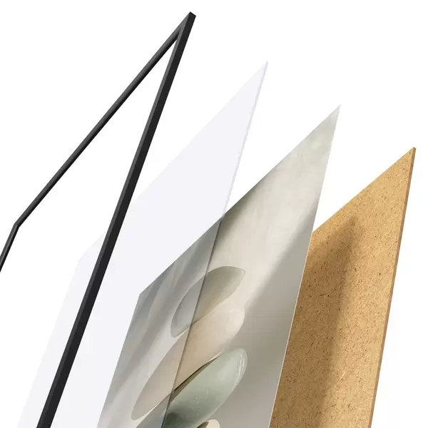 Plagát sa skladá z rámu, plexiskla, vytlačeného obrazu a podkladu z drevotriesky. Plagát možno okamžite zavesiť na stenu vďaka úchytom na zadnej strane.