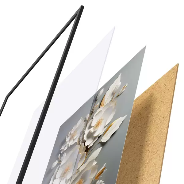 Plagát sa skladá z rámu, plexiskla, vytlačeného obrazu a podkladu z drevotriesky. Plagát možno okamžite zavesiť na stenu vďaka úchytom na zadnej strane.