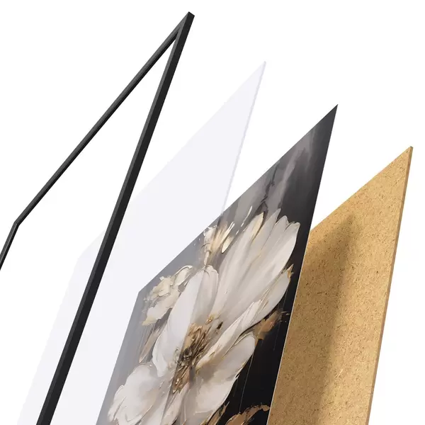 Plagát sa skladá z rámu, plexiskla, vytlačeného obrazu a podkladu z drevotriesky. Plagát možno okamžite zavesiť na stenu vďaka úchytom na zadnej strane.