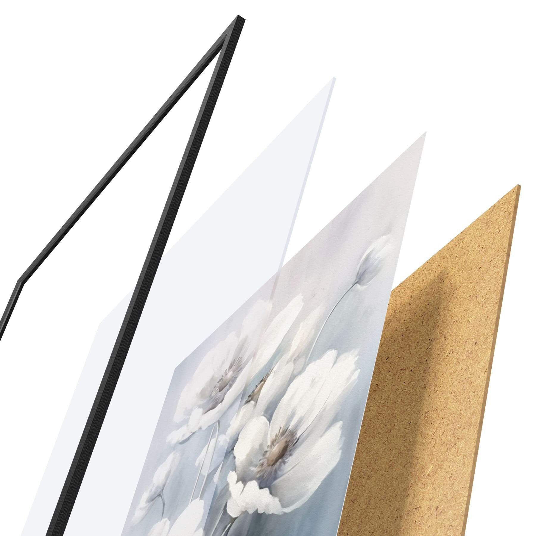 Plagát sa skladá z rámu, plexiskla, vytlačeného obrazu a podkladu z drevotriesky. Plagát možno okamžite zavesiť na stenu vďaka úchytom na zadnej strane.