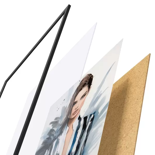 Plagát sa skladá z rámu, plexiskla, vytlačeného obrazu a podkladu z drevotriesky. Plagát možno okamžite zavesiť na stenu vďaka úchytom na zadnej strane.