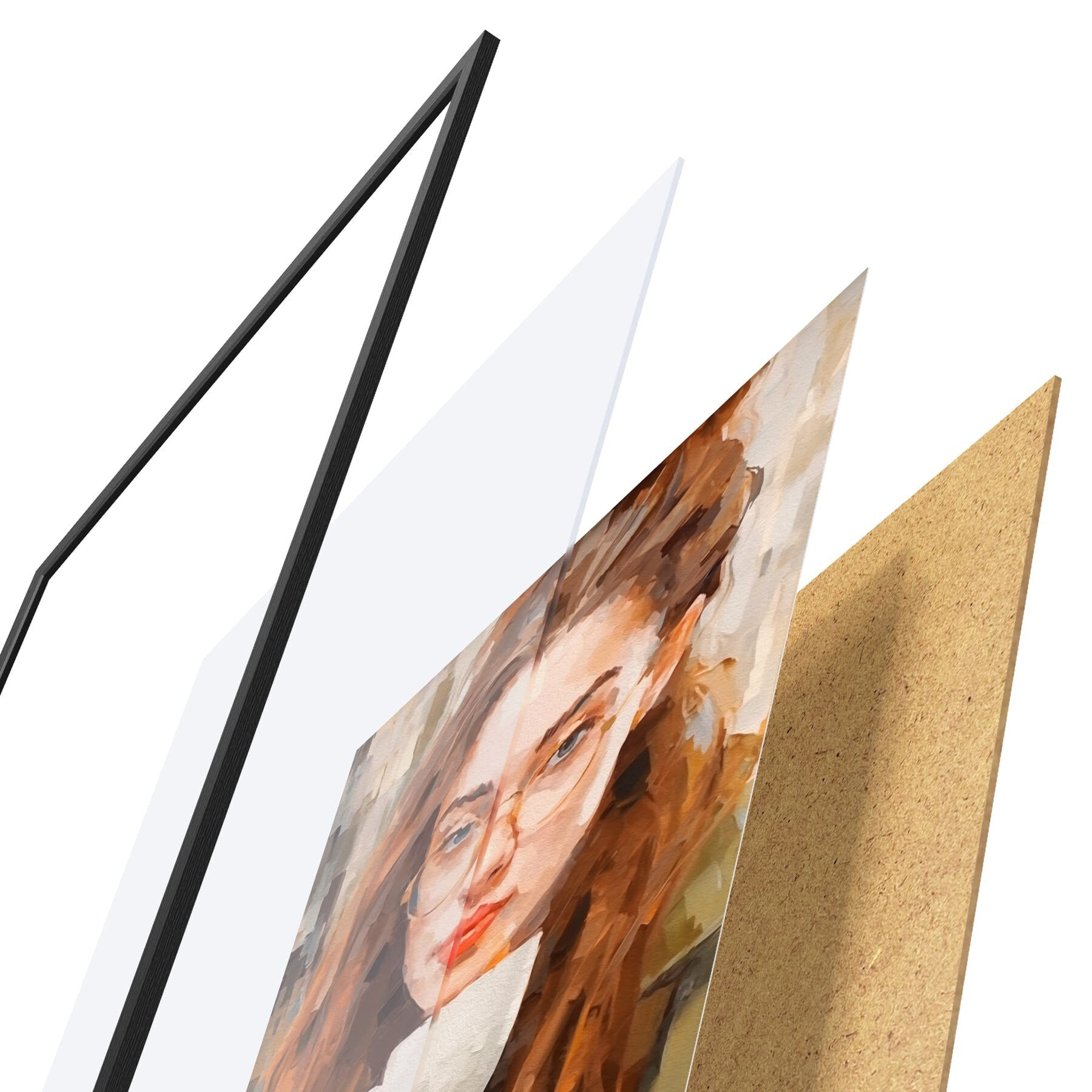 Plagát sa skladá z rámu, plexiskla, vytlačeného obrazu a podkladu z drevotriesky. Plagát možno okamžite zavesiť na stenu vďaka úchytom na zadnej strane.