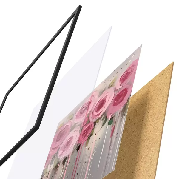 Plagát sa skladá z rámu, plexiskla, vytlačeného obrazu a podkladu z drevotriesky. Plagát možno okamžite zavesiť na stenu vďaka úchytom na zadnej strane.