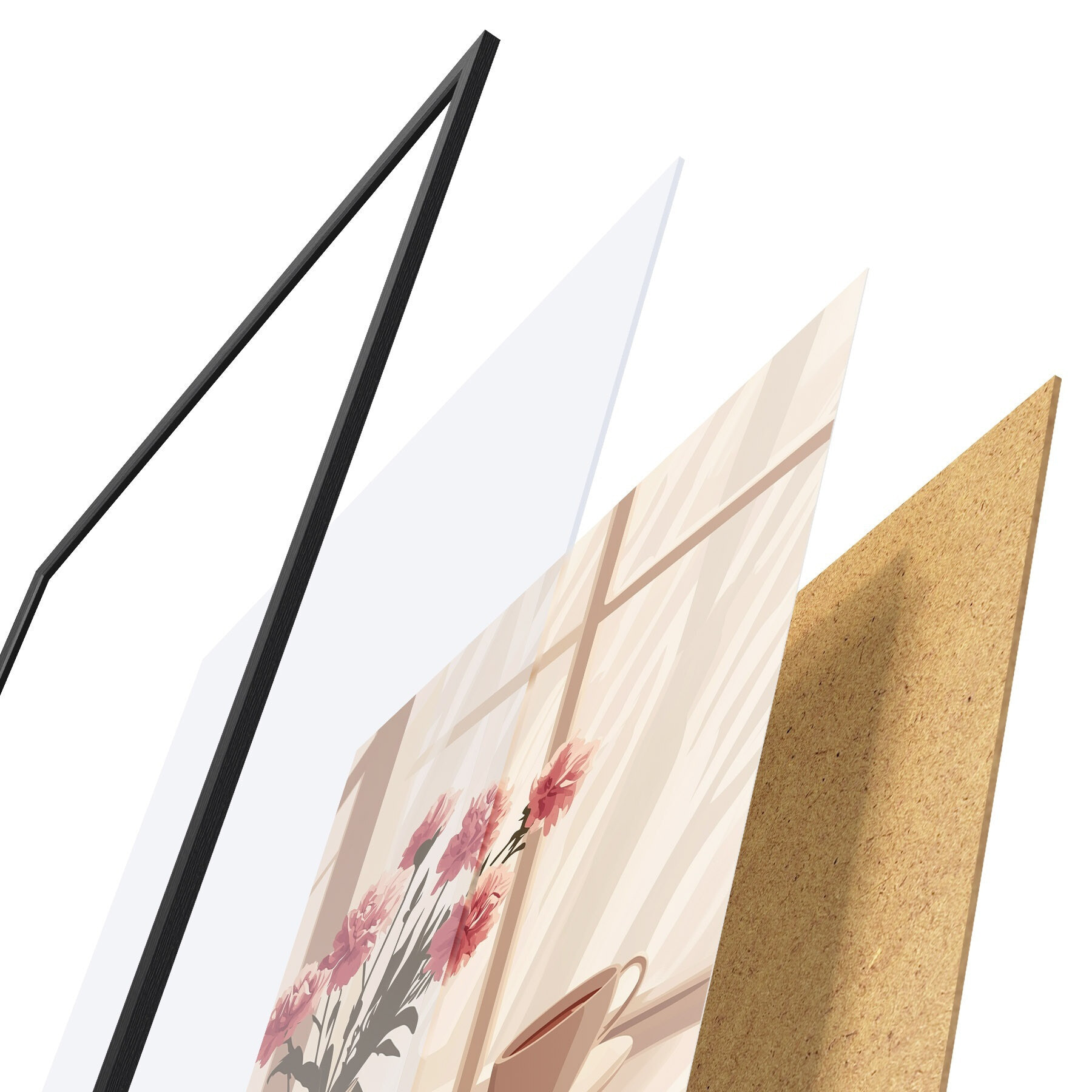 Plagát sa skladá z rámu, plexiskla, vytlačeného obrazu a podkladu z drevotriesky. Plagát možno okamžite zavesiť na stenu vďaka úchytom na zadnej strane.