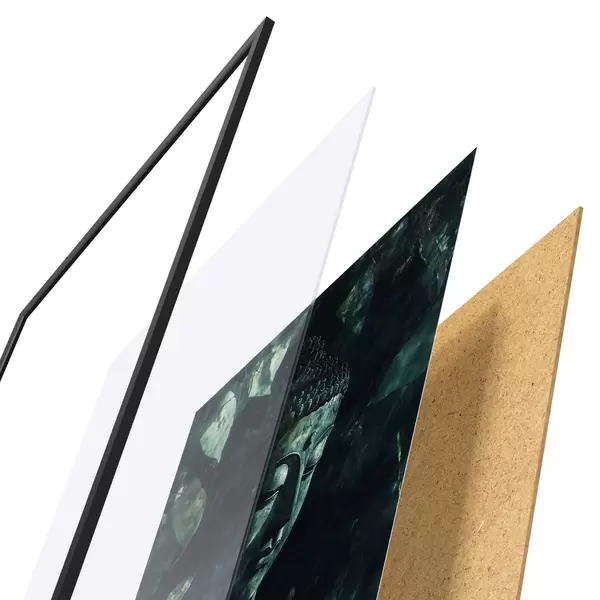 Plagát sa skladá z rámu, plexiskla, vytlačeného obrazu a podkladu z drevotriesky. Plagát možno okamžite zavesiť na stenu vďaka úchytom na zadnej strane.