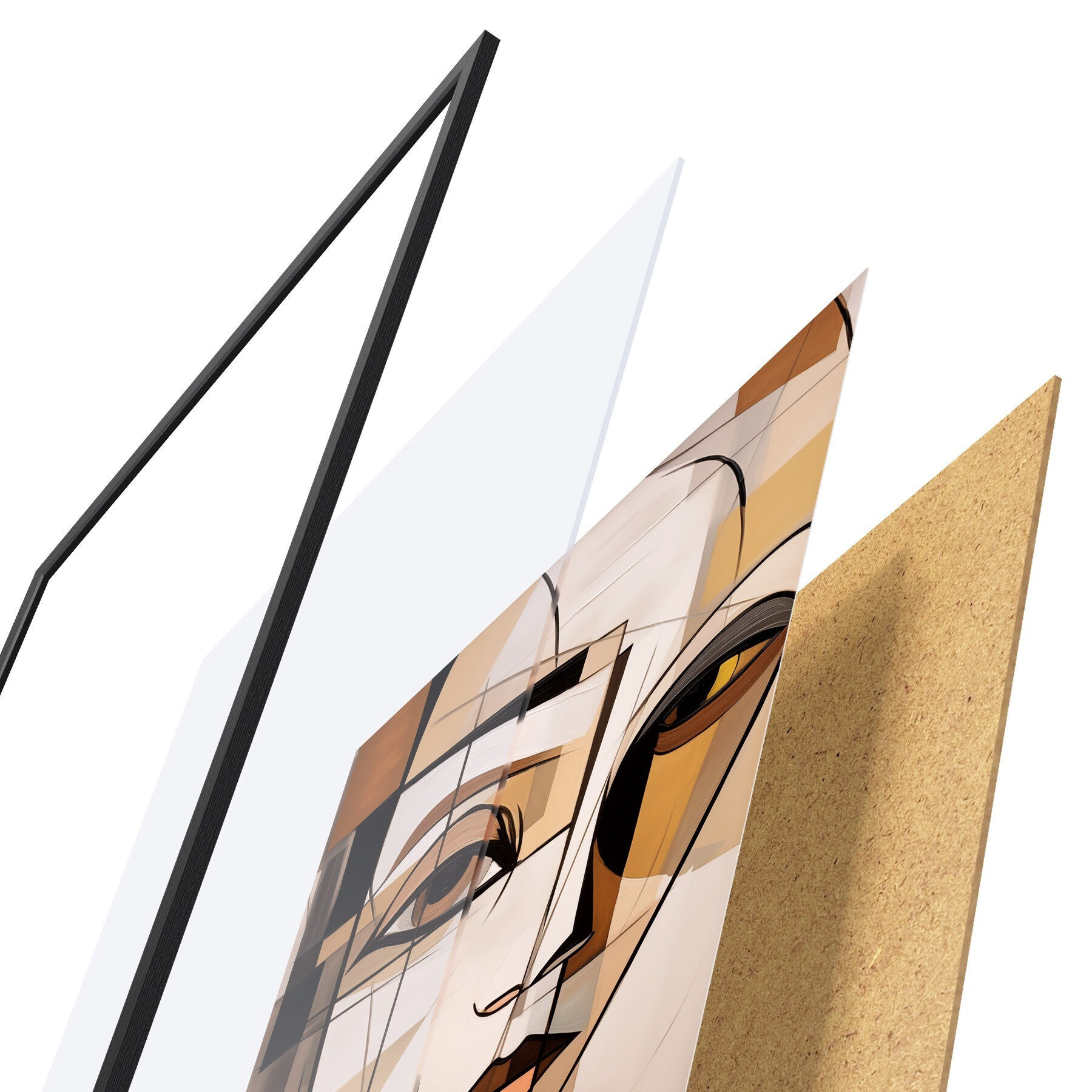 Plagát sa skladá z rámu, plexiskla, vytlačeného obrazu a podkladu z drevotriesky. Plagát možno okamžite zavesiť na stenu vďaka úchytom na zadnej strane.