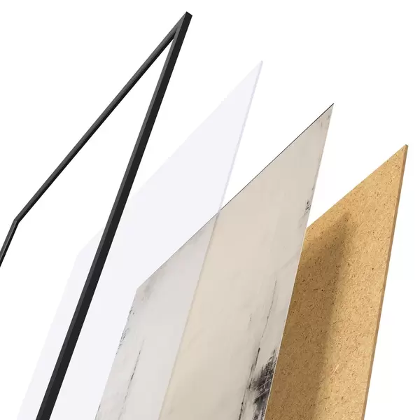 Plagát sa skladá z rámu, plexiskla, vytlačeného obrazu a podkladu z drevotriesky. Plagát možno okamžite zavesiť na stenu vďaka úchytom na zadnej strane.