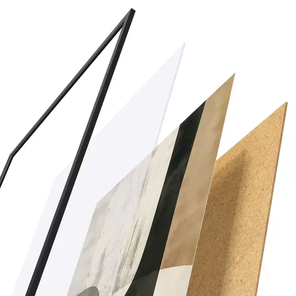 Plagát sa skladá z rámu, plexiskla, vytlačeného obrazu a podkladu z drevotriesky. Plagát možno okamžite zavesiť na stenu vďaka úchytom na zadnej strane.
