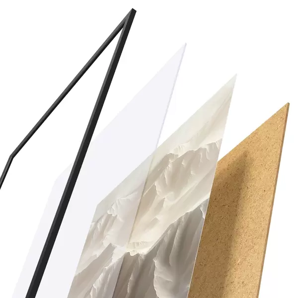 Plagát sa skladá z rámu, plexiskla, vytlačeného obrazu a podkladu z drevotriesky. Plagát možno okamžite zavesiť na stenu vďaka úchytom na zadnej strane.