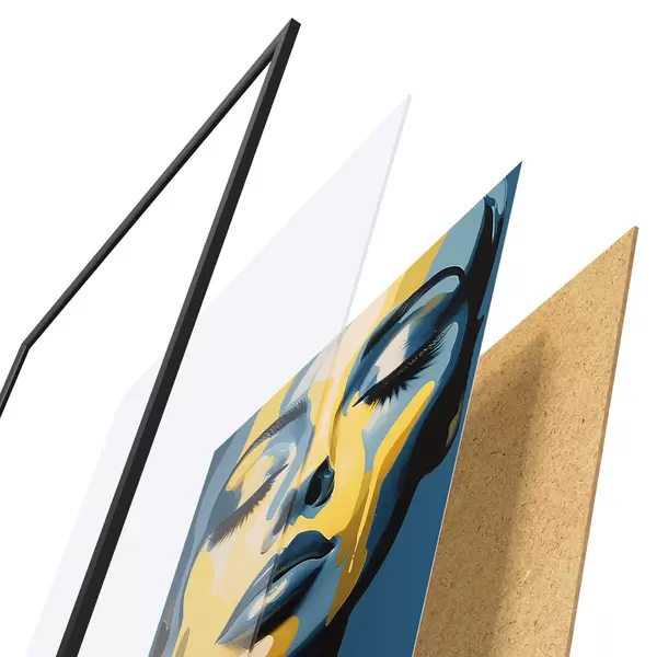 Plagát sa skladá z rámu, plexiskla, vytlačeného obrazu a podkladu z drevotriesky. Plagát možno okamžite zavesiť na stenu vďaka úchytom na zadnej strane.
