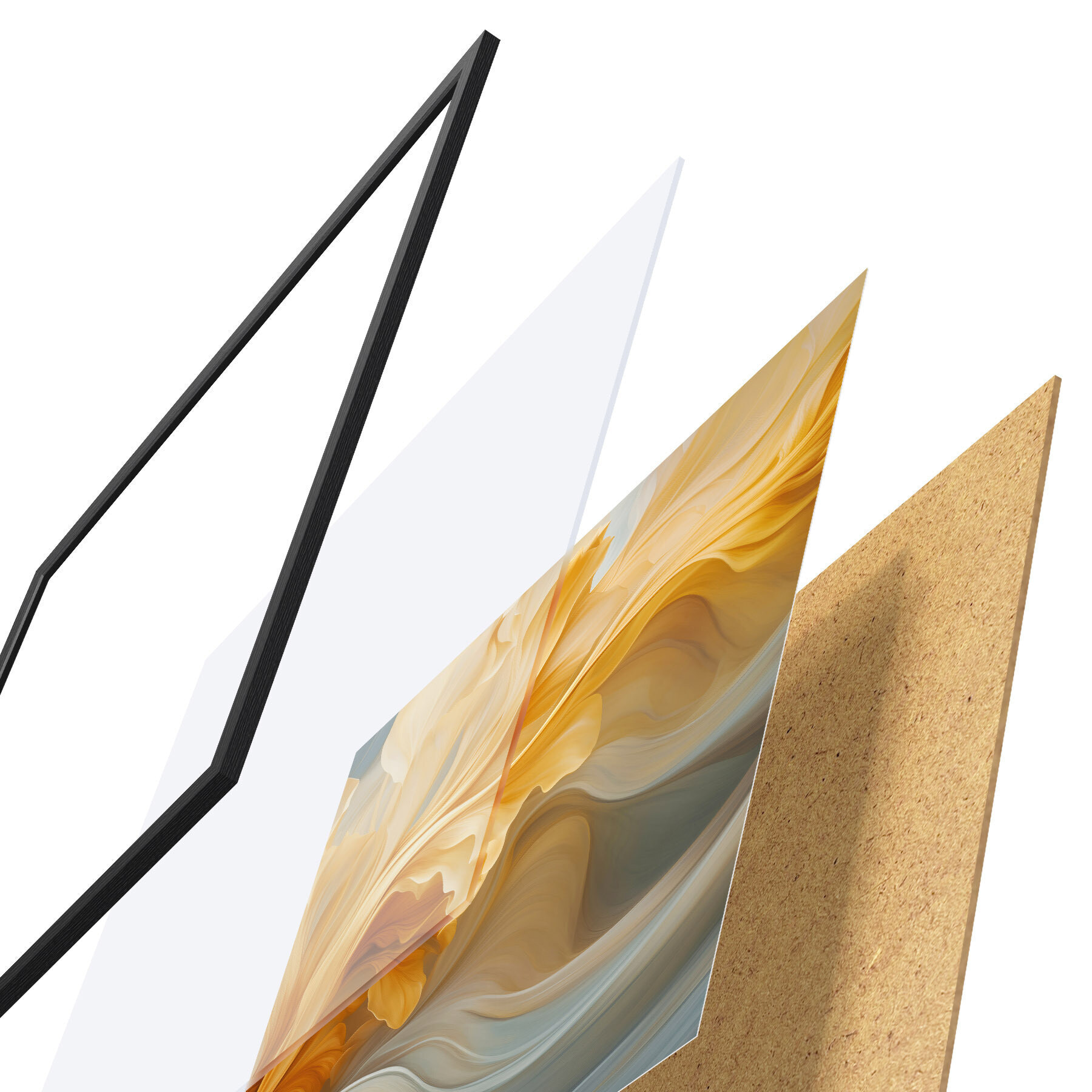 Plagát sa skladá z rámu, plexiskla, vytlačeného obrazu a podkladu z drevotriesky. Plagát možno okamžite zavesiť na stenu vďaka úchytom na zadnej strane.