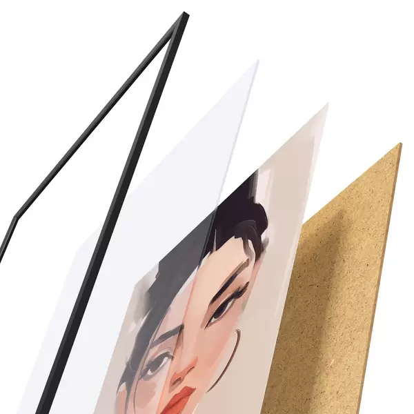 Plagát sa skladá z rámu, plexiskla, vytlačeného obrazu a podkladu z drevotriesky. Plagát možno okamžite zavesiť na stenu vďaka úchytom na zadnej strane.