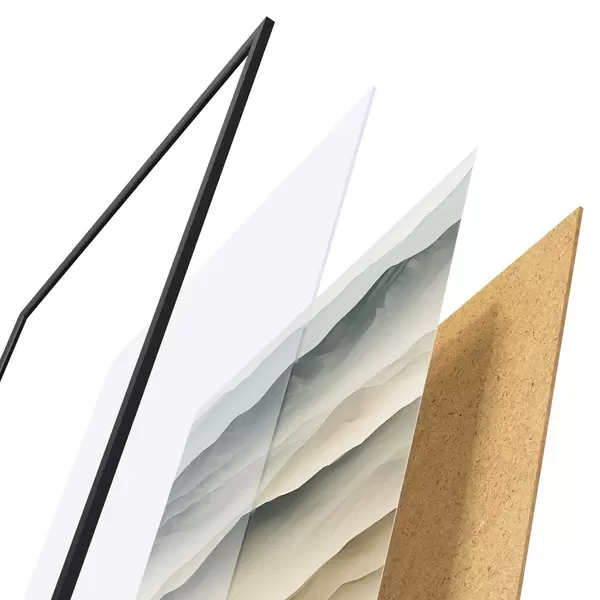 Plagát sa skladá z rámu, plexiskla, vytlačeného obrazu a podkladu z drevotriesky. Plagát možno okamžite zavesiť na stenu vďaka úchytom na zadnej strane.