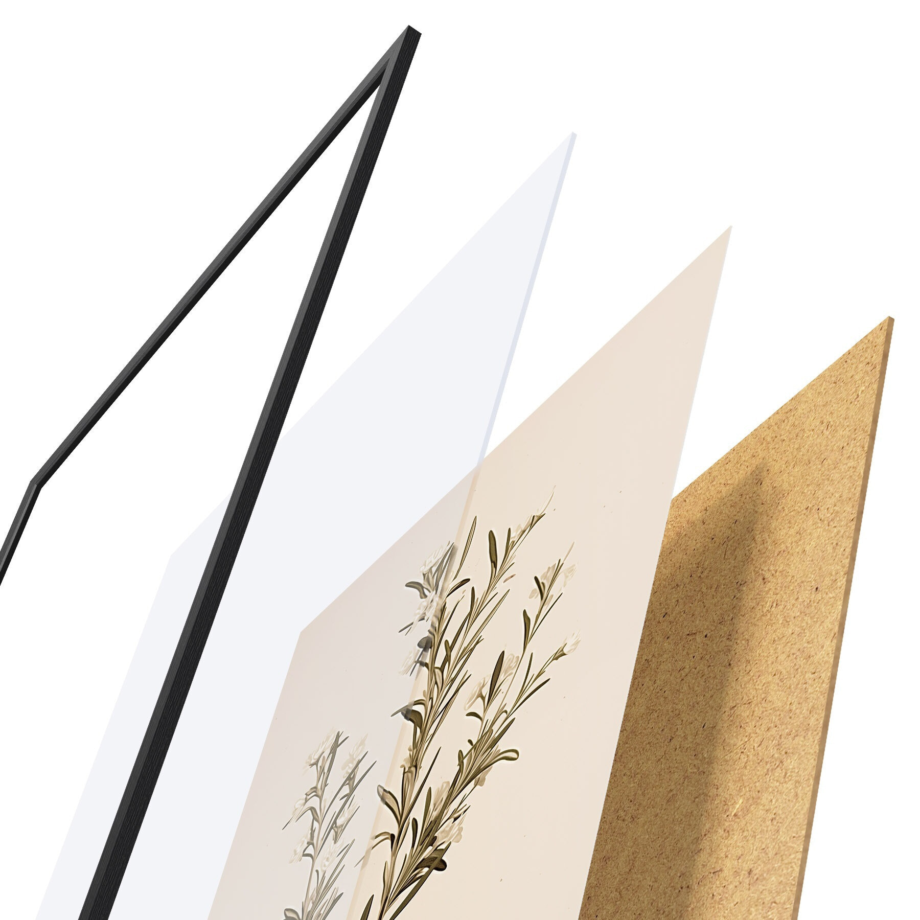 Plagát sa skladá z rámu, plexiskla, vytlačeného obrazu a podkladu z drevotriesky. Plagát možno okamžite zavesiť na stenu vďaka úchytom na zadnej strane.