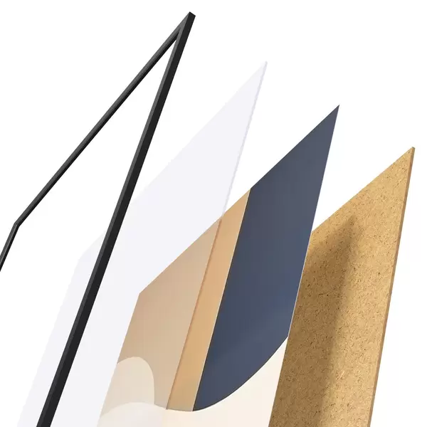 Plagát sa skladá z rámu, plexiskla, vytlačeného obrazu a podkladu z drevotriesky. Plagát možno okamžite zavesiť na stenu vďaka úchytom na zadnej strane.
