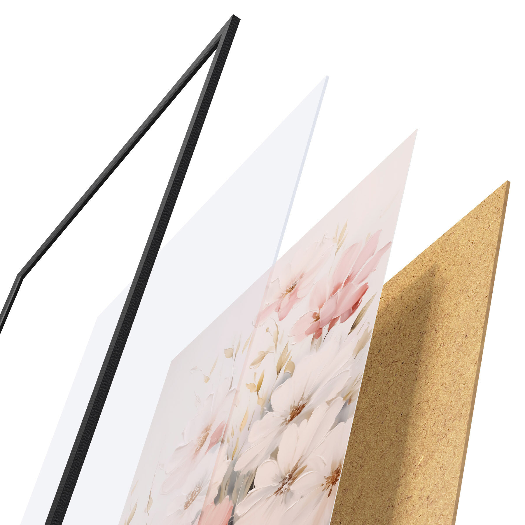 Plagát sa skladá z rámu, plexiskla, vytlačeného obrazu a podkladu z drevotriesky. Plagát možno okamžite zavesiť na stenu vďaka úchytom na zadnej strane.