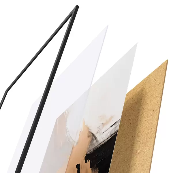 Plagát sa skladá z rámu, plexiskla, vytlačeného obrazu a podkladu z drevotriesky. Plagát možno okamžite zavesiť na stenu vďaka úchytom na zadnej strane.