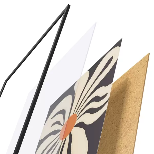 Plagát sa skladá z rámu, plexiskla, vytlačeného obrazu a podkladu z drevotriesky. Plagát možno okamžite zavesiť na stenu vďaka úchytom na zadnej strane.