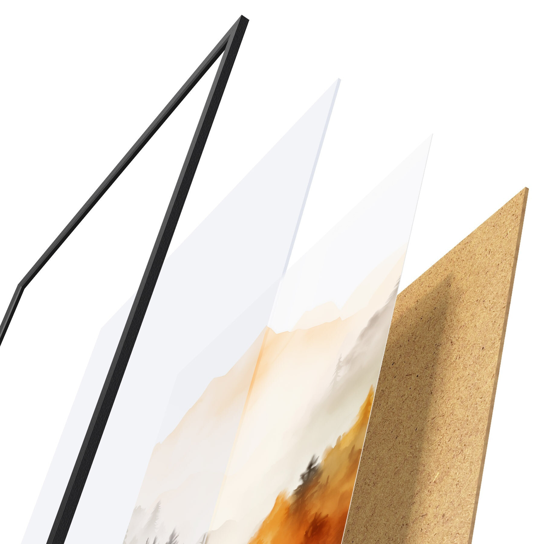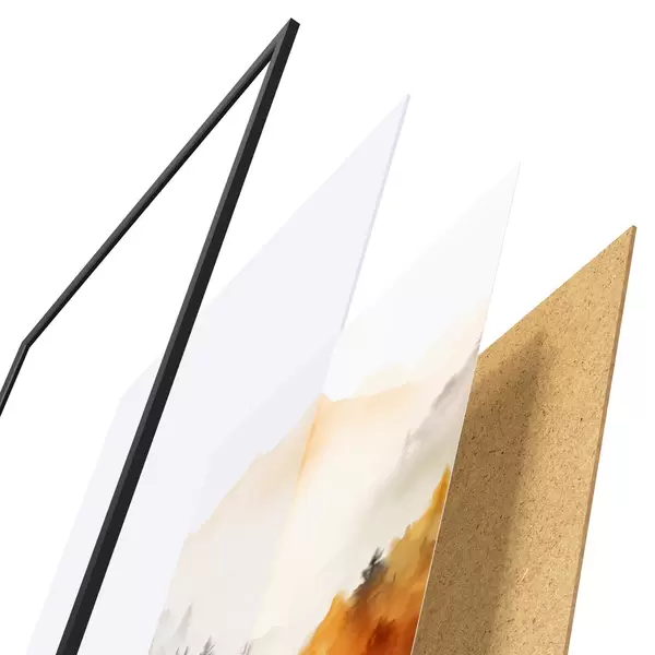 Plagát sa skladá z rámu, plexiskla, vytlačeného obrazu a podkladu z drevotriesky. Plagát možno okamžite zavesiť na stenu vďaka úchytom na zadnej strane.