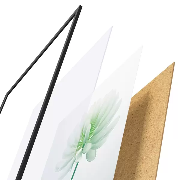 Plagát sa skladá z rámu, plexiskla, vytlačeného obrazu a podkladu z drevotriesky. Plagát možno okamžite zavesiť na stenu vďaka úchytom na zadnej strane.