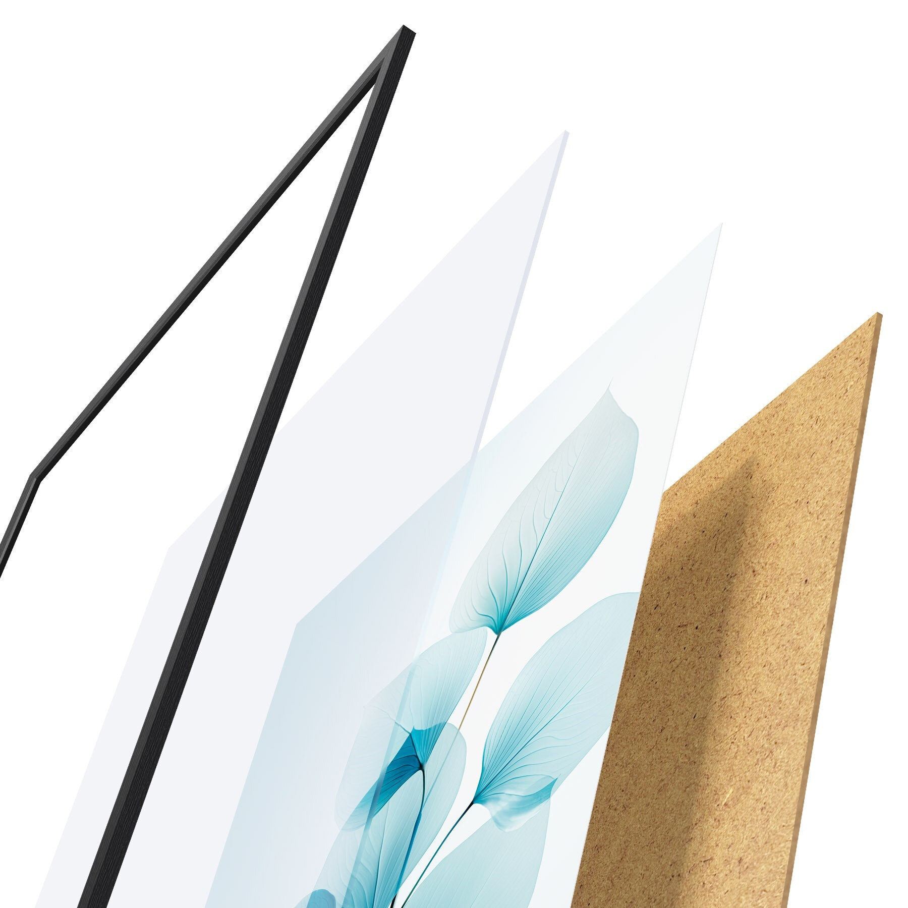 Plagát sa skladá z rámu, plexiskla, vytlačeného obrazu a podkladu z drevotriesky. Plagát možno okamžite zavesiť na stenu vďaka úchytom na zadnej strane.