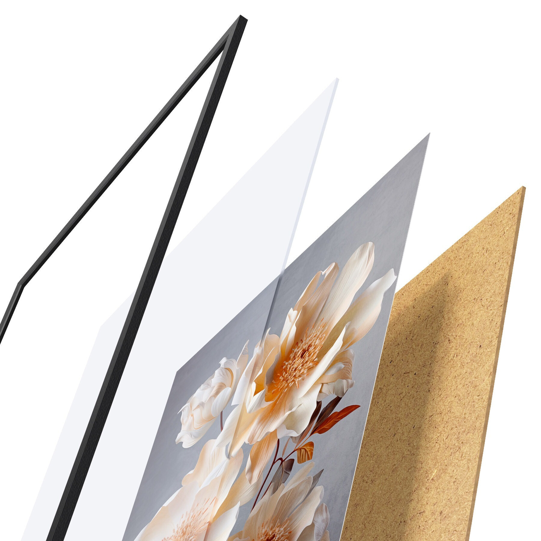 Plagát sa skladá z rámu, plexiskla, vytlačeného obrazu a podkladu z drevotriesky. Plagát možno okamžite zavesiť na stenu vďaka úchytom na zadnej strane.