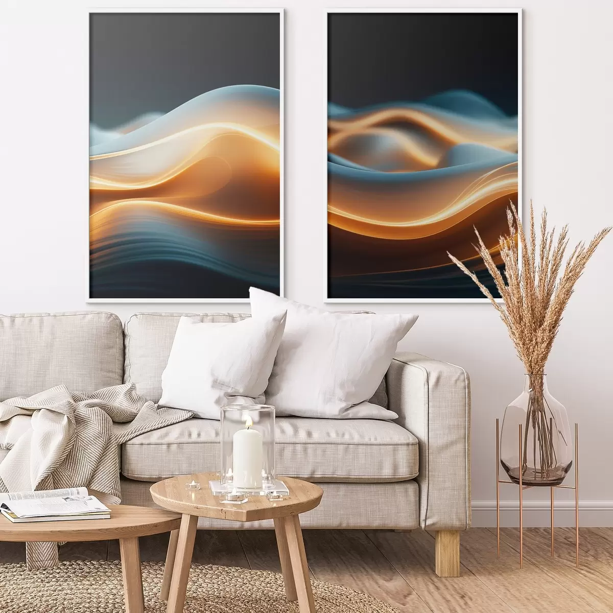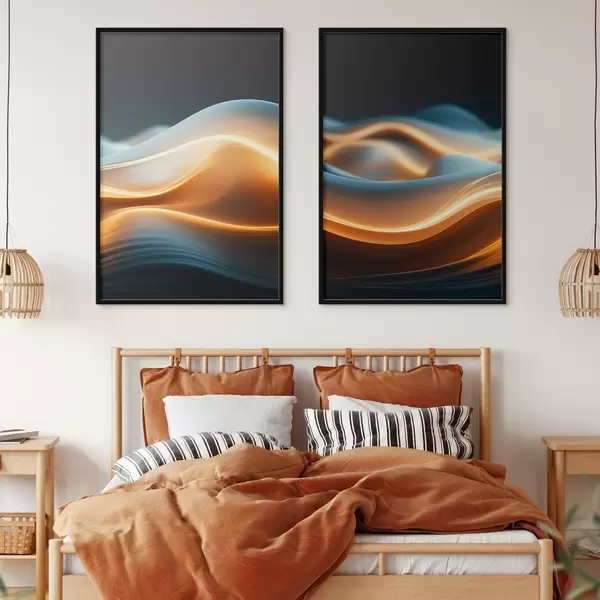 Plagáty Abstraktné plynulé tvary s oranžovými líniami, hladké krivky a línie, dynamická kompozícia, tmavé pozadie Nr d00526