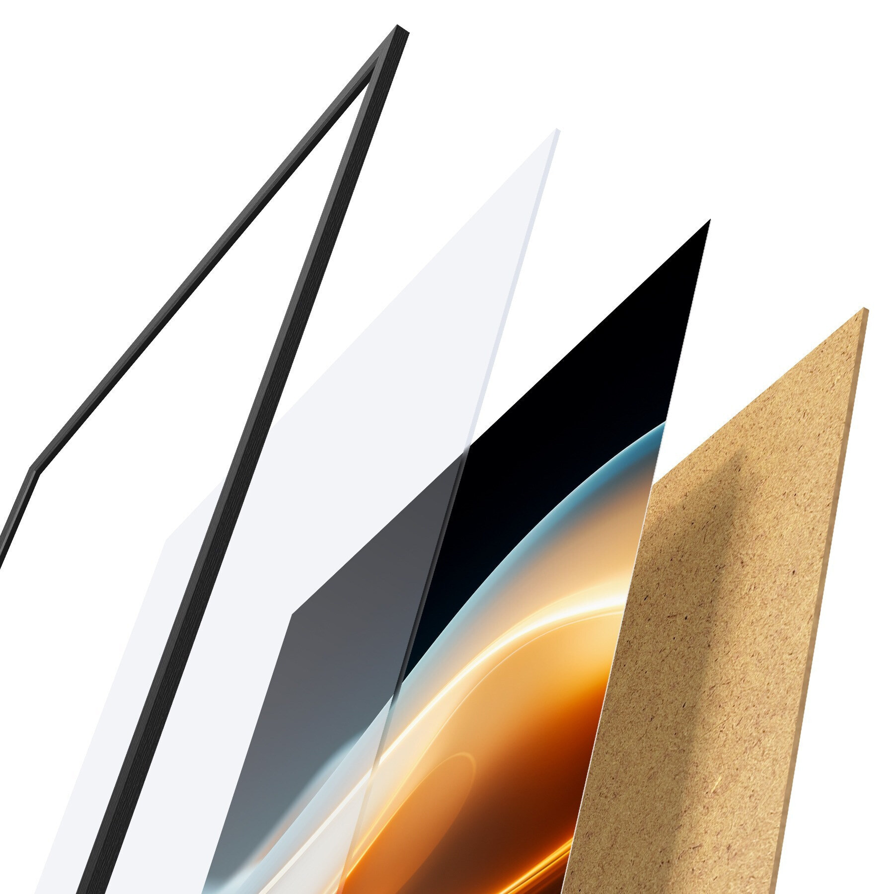 Plagát sa skladá z rámu, plexiskla, vytlačeného obrazu a podkladu z drevotriesky. Plagát možno okamžite zavesiť na stenu vďaka úchytom na zadnej strane.