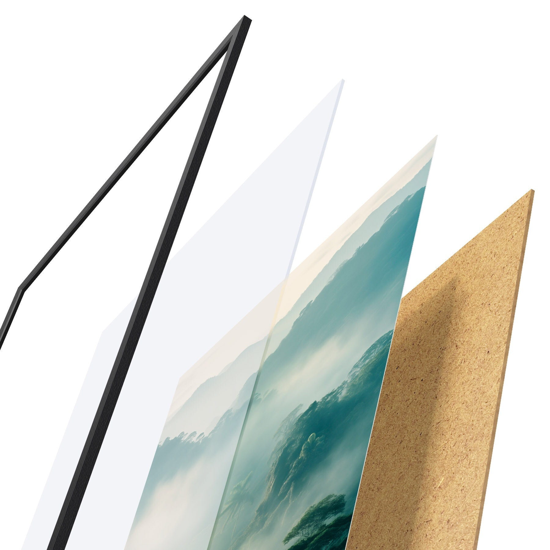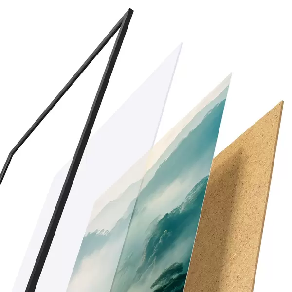 Plagát sa skladá z rámu, plexiskla, vytlačeného obrazu a podkladu z drevotriesky. Plagát možno okamžite zavesiť na stenu vďaka úchytom na zadnej strane.