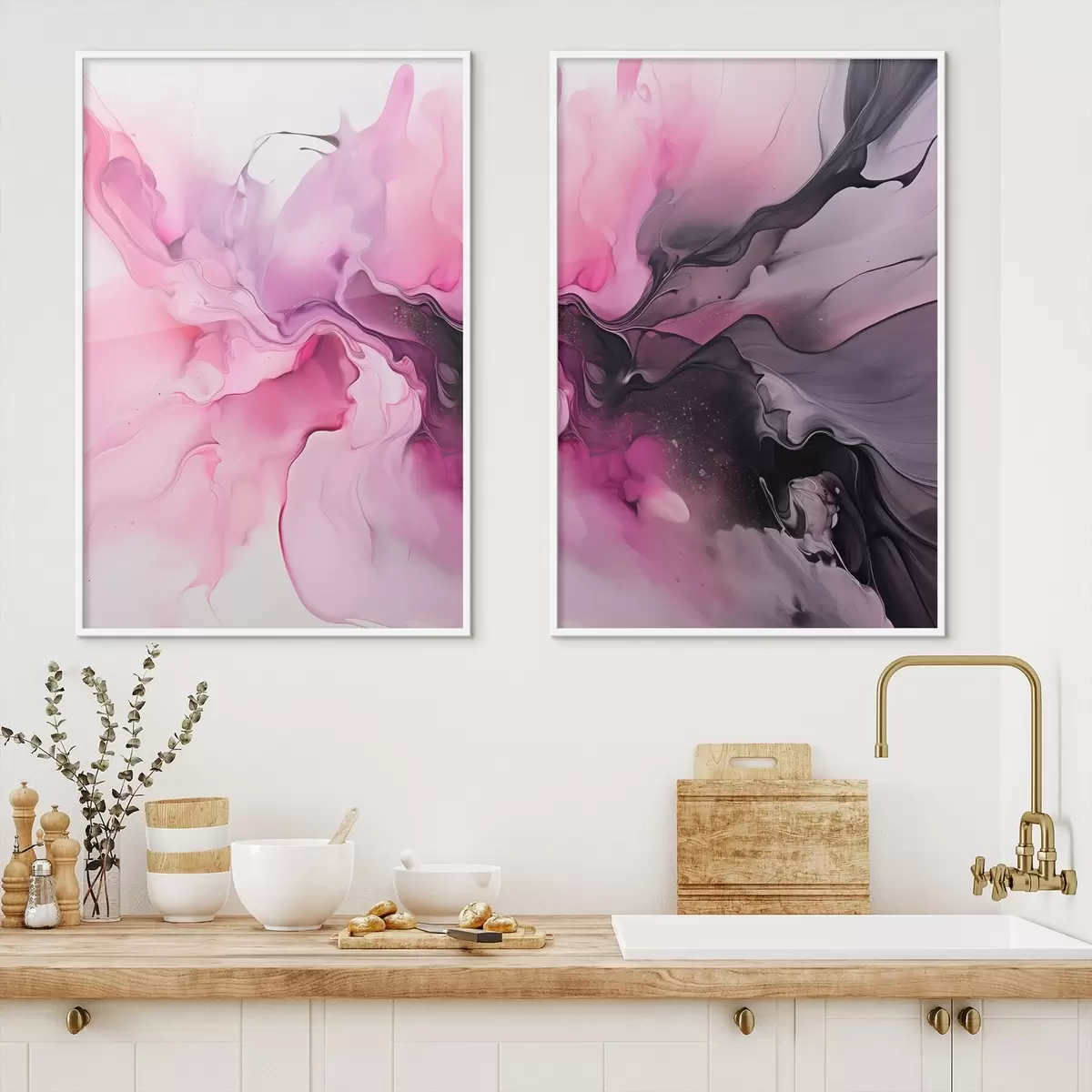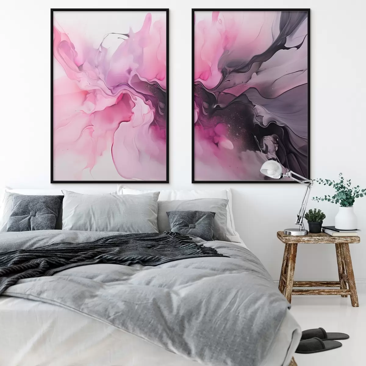 Plagáty Abstraktné víry ružovej, fialovej a čiernej farby sa prelínajú do organickej kompozície a vytvárajú pocit pohybu Nr d00532