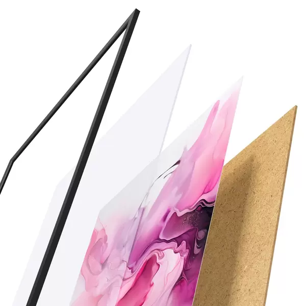 Plagát sa skladá z rámu, plexiskla, vytlačeného obrazu a podkladu z drevotriesky. Plagát možno okamžite zavesiť na stenu vďaka úchytom na zadnej strane.