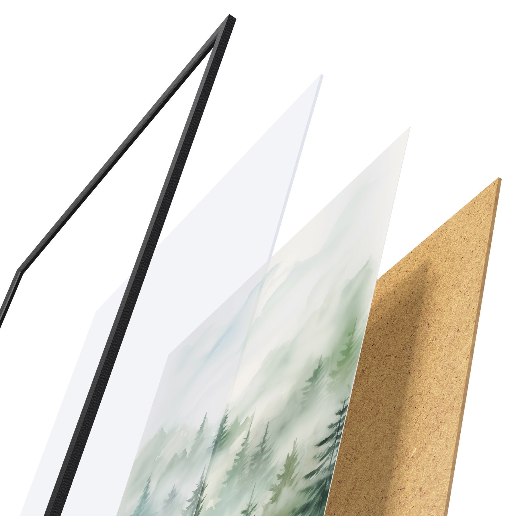 Plagát sa skladá z rámu, plexiskla, vytlačeného obrazu a podkladu z drevotriesky. Plagát možno okamžite zavesiť na stenu vďaka úchytom na zadnej strane.