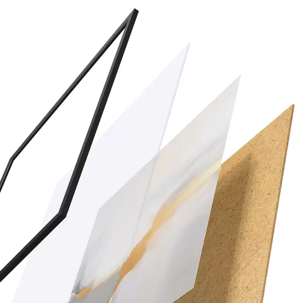 Plagát sa skladá z rámu, plexiskla, vytlačeného obrazu a podkladu z drevotriesky. Plagát možno okamžite zavesiť na stenu vďaka úchytom na zadnej strane.