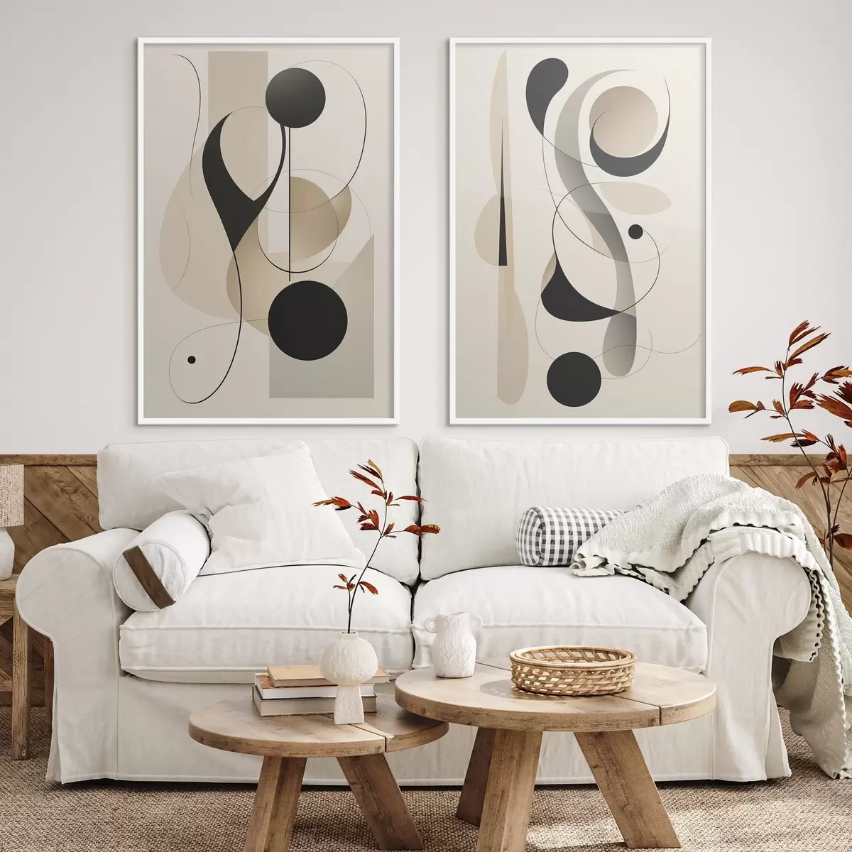 Plagáty Abstraktná kompozícia s krivkami a tvarmi Nr d00538