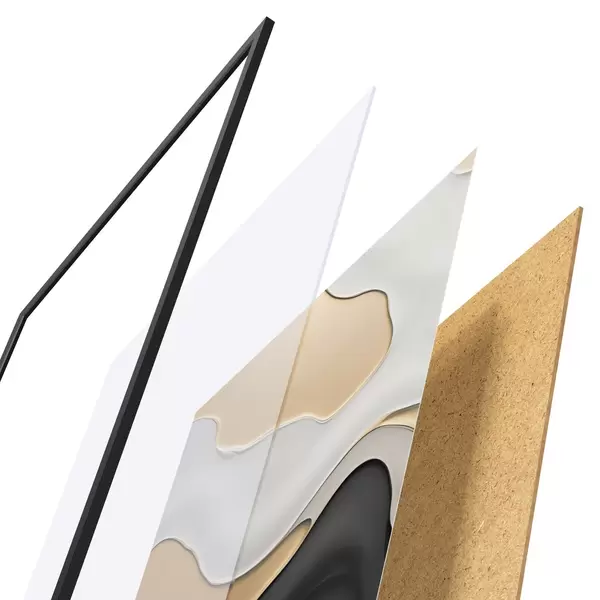 Plagát sa skladá z rámu, plexiskla, vytlačeného obrazu a podkladu z drevotriesky. Plagát možno okamžite zavesiť na stenu vďaka úchytom na zadnej strane.