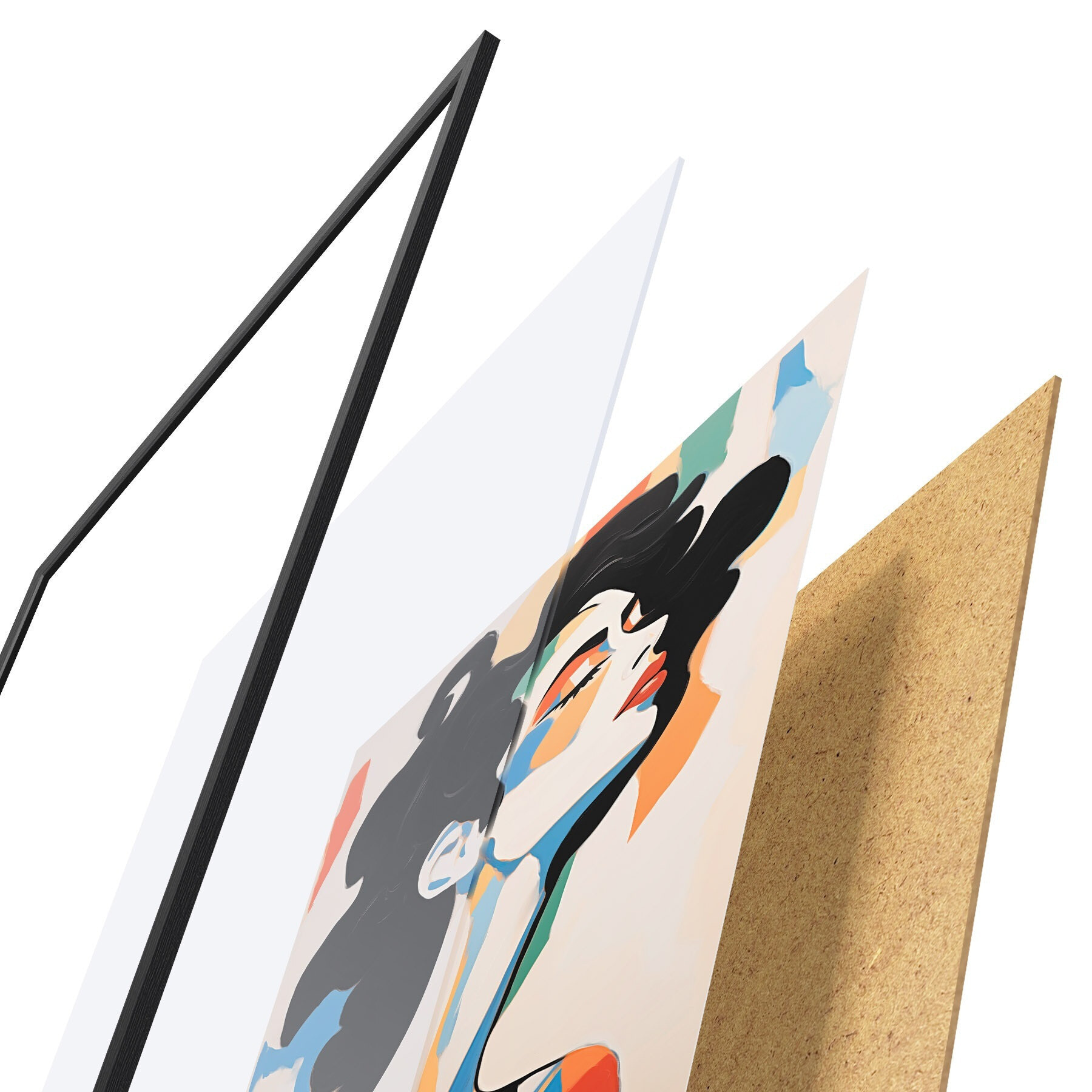 Plagát sa skladá z rámu, plexiskla, vytlačeného obrazu a podkladu z drevotriesky. Plagát možno okamžite zavesiť na stenu vďaka úchytom na zadnej strane.
