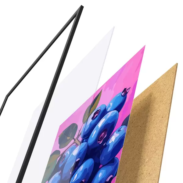 Plagát sa skladá z rámu, plexiskla, vytlačeného obrazu a podkladu z drevotriesky. Plagát možno okamžite zavesiť na stenu vďaka úchytom na zadnej strane.