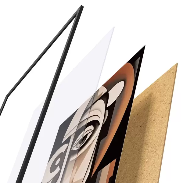 Plagát sa skladá z rámu, plexiskla, vytlačeného obrazu a podkladu z drevotriesky. Plagát možno okamžite zavesiť na stenu vďaka úchytom na zadnej strane.