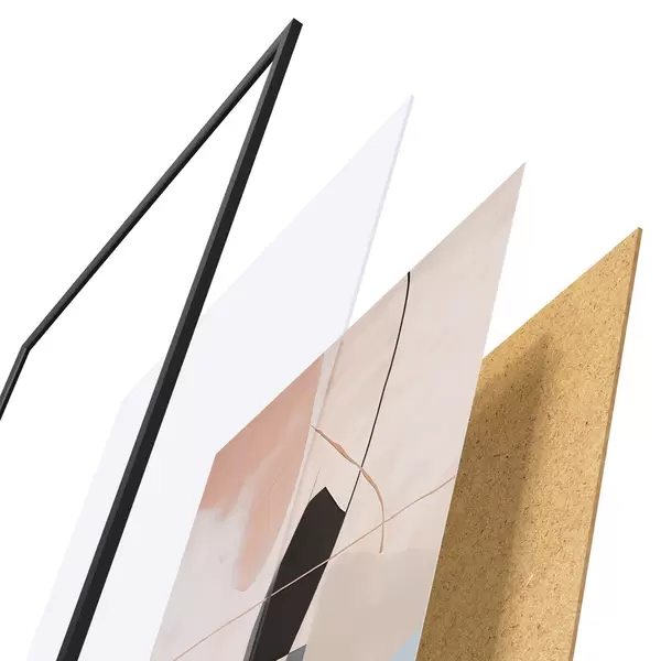 Plagát sa skladá z rámu, plexiskla, vytlačeného obrazu a podkladu z drevotriesky. Plagát možno okamžite zavesiť na stenu vďaka úchytom na zadnej strane.