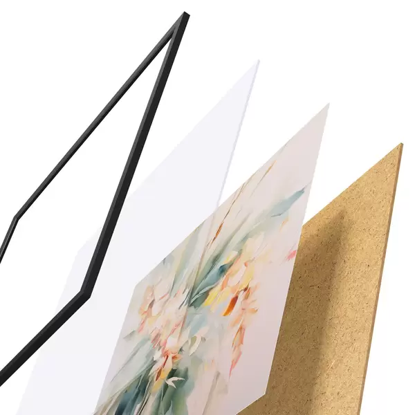 Plagát sa skladá z rámu, plexiskla, vytlačeného obrazu a podkladu z drevotriesky. Plagát možno okamžite zavesiť na stenu vďaka úchytom na zadnej strane.
