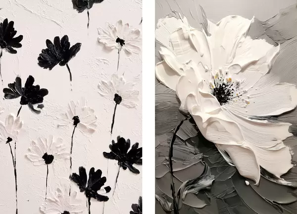 Plagáty Diptych s bielymi a čiernymi kvetmi v modernom štýle Nr d00571