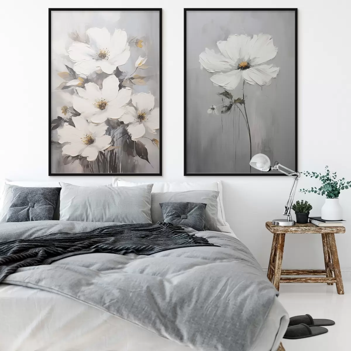 Plagáty Umelecká kompozícia s bielymi kvetmi a textúrovaným povrchom v minimalistickom štýle Nr d00574